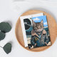 Tarjeta de cumpleaños con una foto de un gato con chaqueta de cuero, gafas y un avión en el fondo. Dentro hay deseos de cumpleaños que dicen "Sintiéndose bien a la altitud de crucero". Perfecta para un piloto o entusiasta de la aviación. Personalízala con tu nombre, dirección y tus propios deseos de cumpleaños para hacerla aún más especial. Gato Piloto & Avión, Tarjeta de cumpleaños divertida y genial de Aviación es Copyright de Soar In Style Designs LLC.