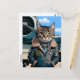 Postal Cumpleaños Gato Piloto Divertido & Avión Aviación