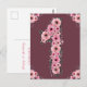 Postal Cumpleaños grande número 1 Flores rosadas Niña Fol