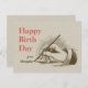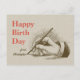 Postal Cumpleaños Mano masculina sosteniendo una pluma fu