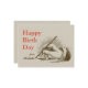 Postal de cumpleaños inspirada en una imagen vintage de una mano masculina sosteniendo una pluma fuente. La mano acaba de terminar de escribir un simple saludo de cumpleaños, sólo Feliz cumpleaños y el nombre del remitente. Personalice la postal escribiendo sobre los textos de ejemplo. Si no eres Christopher, por favor recuerda añadir el nombre correcto.