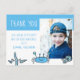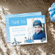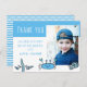 Tarjeta postal de cumpleaños de niño con foto de animales marinos cangrejo azul lindo. Este diseño viene con un dibujo de animales marinos azules lindos y texto de agradecimiento. Agrega tu foto, nombre y texto, y haz una tarjeta de agradecimiento de cumpleaños linda para la fiesta de cumpleaños de un niño.