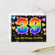 El frente de este diseño de tarjeta postal temática de cumpleaños, amoroso, emocionante y divertido, presenta un gran número "39" con un patrón inspirado en el gradiente del espectro del arcoíris, junto con el mensaje "Feliz cumpleaños 39" y un nombre de destinatario personalizable. La parte delantera tiene además un colorido y vibrante patrón de fondo de formas de corazón amorosas. La parte trasera cuenta con un mensaje de saludo de cumpleaños personalizable, o quizás podría estar en blanco si se desea escribir un mensaje a mano en su lugar. Una tarjeta postal de cumpleaños personalizada como esta podría ser una forma divertida de enviar un mensaje para celebrar el cumpleaños número treinta y nueve de alguien. Tarjetas postales como esta también podrían utilizarse para invitar a los invitados a una celebración de cumpleaños o fiesta que se organice para alguien que cumple 39 años.