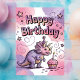 Postal Cumpleaños personalizado de dinosaurio para niñas