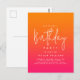 ¡Celebra tu cumpleaños con un estilo audaz y hermoso! Esta invitación de cumpleaños personalizada impresa en una postal hace exactamente eso con sus colores de gradiente ombre naranja brillante y rosa intenso mezclados con texto moderno blanco y un acento de letra manuscrita que deletrea la palabra "cumpleaños" en un estilo fabuloso. ¡Los colores se asemejan a una salida del sol y al amanecer de una nueva era! Estas invitaciones se pueden pedir en formatos digitales impresos y de descarga instantánea.