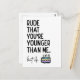 Nuestra tarjeta de cumpleaños con la leyenda 'Grosero que seas más joven que yo' es una excelente idea para cualquier persona que ame el sarcasmo y las tarjetas de cumpleaños divertidas.