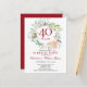 Con una delicada guirnalda floral de acuarela, esta elegante invitación botánica de cumpleaños sorpresa para el 40 aniversario de boda se puede personalizar con la información especial de su aniversario de rubí. El reverso presenta una guirnalda floral a juego que enmarca las fechas del aniversario en elegante texto blanco sobre fondo rubí. Diseñado por Thisisnotme©