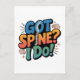 Este juguetón diseño quiropráctico incluye la frase "¿Tienes espina? ¡Lo hago!" con tipografía audaz y un gráfico de columna creativo. Perfecto para quiroprácticos, estudiantes quiroprácticos y defensores del bienestar que aman el humor mezclado con la conciencia de la salud de la columna vertebral. Un gran regalo de quiropráctica para clínicas, graduaciones o ropa de uso diario.