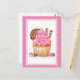 Esta encantadora y moderna tarjeta postal de acuarela presenta un cupcake de vainilla rosa coronado con una galleta con chispas de chocolate y rodeado de dulces de chocolate.