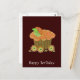 Un hermoso cupcake naranja con rodajas de frutas de caramelo encima. Un fondo marrón chocolate. Personalice según sea necesario.