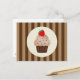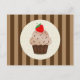 Un diseño super lindo con deliciosos pastelitos de chocolate aspersados con fresa encima. En segundo plano, se pueden observar tonos marrones, tostados y beige con un punto de polka y rayas. ¡No es lindo!