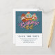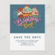 Tarjeta postal de guardar la fecha con un montón de cupcakes deliciosos con remolinos y cerezas y glaseado rico. El estilo de ilustración le da un clásico toque retro.