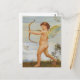 Esta exquisita pintura de Walter Crane representa a un Cupido juvenil, el dios clásico del amor, a mitad de camino a través de un paisaje sereno. Con una mirada enfocada, el querubín alado apunta su icónico arco contra un cielo suave y azul pálido. La composición se enriquece con elementos simbólicos: dos palomas blancas en vuelo representan la paz y la devoción, mientras que un pequeño rosal añade un delicado toque botánico. La maestría de Crane en la estética de las Artes y Oficios es evidente en los colores armoniosos y las líneas elegantes. Esta obra de arte vintage atemporal irradia romance e inocencia, lo que la convierte en una opción perfecta para papelería de boda, regalos del Día de San Valentín o decoración clásica de cuarto de niños.