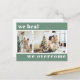 Navidades modernos y simples y diseño de tarjetas de vacaciones de Año Nuevo que presenta una tipografía audaz que dice "curamos, superamos" inspirada en los difíciles desafíos que enfrentaron muchas familias durante esta pandemia de 1950, pero que aún así logró enfrentarla y superarla a través de todo.