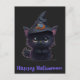 Postal Curioso gato negro de Halloween