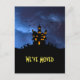 La tarjeta postal del personalizable muestra una casa encapuchada negra con ventanas iluminadas en una noche tormentosa con tormentas y relámpagos. Muestra "Nos hemos mudado" en la parte inferior en amarillo. La parte posterior de la tarjeta describe la dirección, el número de teléfono, la dirección de correo electrónico y otros detalles del movimiento. Personalizar el texto en la parte delantera y trasera. Forma divertida e ingeniosa de anunciar tu movimiento, cambio de dirección y nuevo hogar. Ni siquiera tiene que ser Halloween.