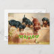Postal Curiosos cachorros de Dachshund y una rana, Navida