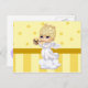 Ángel adorable con el pelo rizado tocando un cuerno.