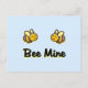 Postcard muestra dos abejas voladoras, lindas, sonrientes sobre las palabras "Mina de abejas" en un texto clásico, retro, con sombra amarilla compensada. El fondo es azul claro como el cielo. Opcionalmente, agregue texto en la parte posterior. Una manera dulce, graciosa y adorable de expresarse, ya sea en El día de San Valentín o para mantenerse firme. Gran postal para alguien especial, incluidos apicultores o apicultores, amantes de insectos y animales, niños y personas que aman la miel.
