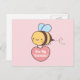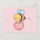 Una postal de saludo con una linda abeja voladora se aferra a un corazón con las palabras de juego de palabras "¡Adquiera mi San Valentín!" ¡Perfecto para el El día de San Valentín de su tristeza!