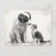 Abran el encantador vínculo de amistad con esta bonita postal, un tesoro para el corazón y una delicia para los ojos. Con un exquisito ilustracion blanco y negro vintage de un tierno Border Collie mirando hacia abajo a un gatito en forma de tabby, esta postal resume la serena relación entre amigos caninos y felinos. Perfecto para los amantes de los animales y los coleccionistas de papelería encantadora. Ya sea enviando buenos deseos, expresando gratitud o agregando un toque de capricho a su colección de papelería personal, la tarjeta es una opción encantadora que los destinatarios valorarán.
