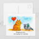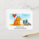 Postal Cute Cartoon Cat Holding Heart Balloon Outdoors