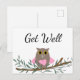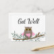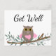 Búho rosa con corazón en la rama, tarjeta postal de recuperación.