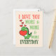 Esta tarjeta de San Valentín presenta un adorable dinosaurio sosteniendo un corazón con tipografía manuscrita vibrante "Te amo más y más y más cada día".