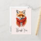Thank you postcard with an adorable illustration featuring a cute little red fox face