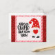 A cualquiera le encantará recibir esta divertida tarjeta postal con una adorable ilustración de gnomo con corazones y un fondo brillante rojo. ¡Perfecta para tus amigos y tu mejor amigo en un cumpleaños o día de San Valentín!