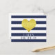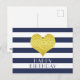 Postal Cute Gold Heart Azul y Blanco Feliz Cumpleaños