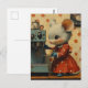 A beautiful little gray mouse in a red dress with white polka dots makes coffee cute fantasy art