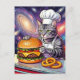 Postal Cute Grey Tabby Cat Chef Making Cheeseburger