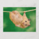 Tarjeta animal mostrando un tierno hámster colgando de una línea.