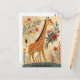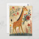 Una colorida ilustración de estilo arte popular de una jirafa con flores, la tarjeta postal perfecta para cumpleaños y otras felicitaciones.