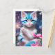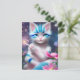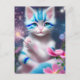 Postal Cute Kawaii bebé a rayas gatito rosa y azul