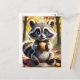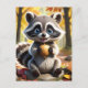 Postal Cute Kawaii estilo Racoon sosteniendo una bellota