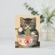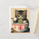 Postal Cute Kitten Comer Ramen Impresión de bloques de ma