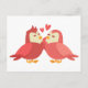 Postal Cute Lovebirds Rojo Borgoña Boda Amor Novia
