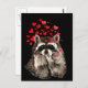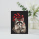 Postal Cute mapache resbalando besos corazones de amor