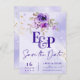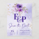 Postal Cute Monograma Boda Floral Púrpura Guardar La Fech
