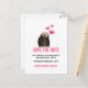 Una tarjeta postal de save the date con una imagen de una nutria adorable con corazones flotando hacia arriba. Los corazones son rosados y parecen regordetes con un reflejo brillante. Esta nutria es bastante adorable con sus patas descansando debajo de su barbilla peluda. Su pelaje parece húmedo por haber estado en el agua.