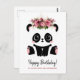 Cute panda Tarjeta de cumpleaños. Oso panda negro y blanco kawaii con corona floral.
