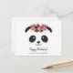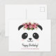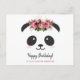 Postal Cute panda Feliz Cumpleaños floral rosa personaliz