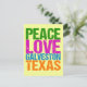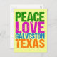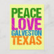Paz Amor Galveston Texas escrito en colores alegres de neón fresco y angustiado de verde, rosa, naranja y azul para una mirada vintage. Un gran regalo para un texano que vive en esta divertida ciudad de la playa o que le gusta pasar unas vacaciones allí en verano.
