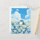 Brighten your correspondence with this heart-melting scene of a sweet, chubby penguin nestled among a sea of soft blue and white blossoms. The digital illustration is rendered in a gentle, painterly aesthetic, featuring a soothing palette of sky blue, creamy white, and sunny yellow centers. Against a brilliant azure sky, towering and fluffy white clouds create a whimsical, airy atmosphere. The penguin’s gentle expression and the delicate floral textures evoke a sense of peaceful springtime joy. This postcard serves as a beautiful canvas for a heartfelt handwritten message or a serene mini-print to accent your workspace gallery wall. Whether it’s traveling through the mail to a loved one or pinned to your inspiration board, it brings a touch of calm to any setting.
