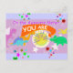 Cuidados Dinos Personalizados En El Increíble Mediodía Eres Una Postales Increíblemente Alegre. Los dinosaurios personalizados super adorables T-Rex púrpura rosa, Stegosaurus azul, Diplodocuments naranjas, triceratops verdes y Pteranodon volador amarillo están mirando el medidor impresionante, está diciendo que ERES "Increíblemente Atractivo" con muchas estrellas de color y postal color de fondo rosado. Esta graciosa y genial que eres increíble postal es totalmente personalizable, agrega tus textos e imágenes! ¡Un gran personalizado de animales adorables da una carta a los grandes y pequeños aficionados al dino!