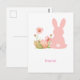 Postal Cute Pink Easter Bunny with Spring Flowers