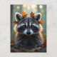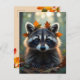 Manténgase en contacto con esta adorable postal con un adorable mapache con hojas de otoño. Si viajas o te vas de la ciudad y quieres registrarte con alguien y hacerles saber que estás pensando en ellos, este adorable mapache les dará una sonrisa.
