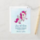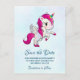 Postal Cute rosa unicornio con alas Guardar fecha
